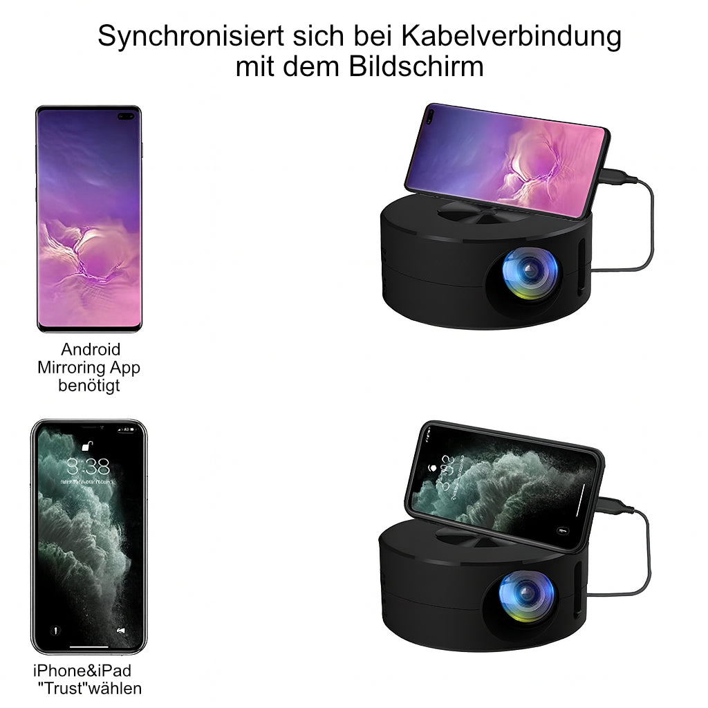 Unterstützt Android & iOS über USB – ideal für Videos, Fotos, Apps oder kleine Präsentationen.