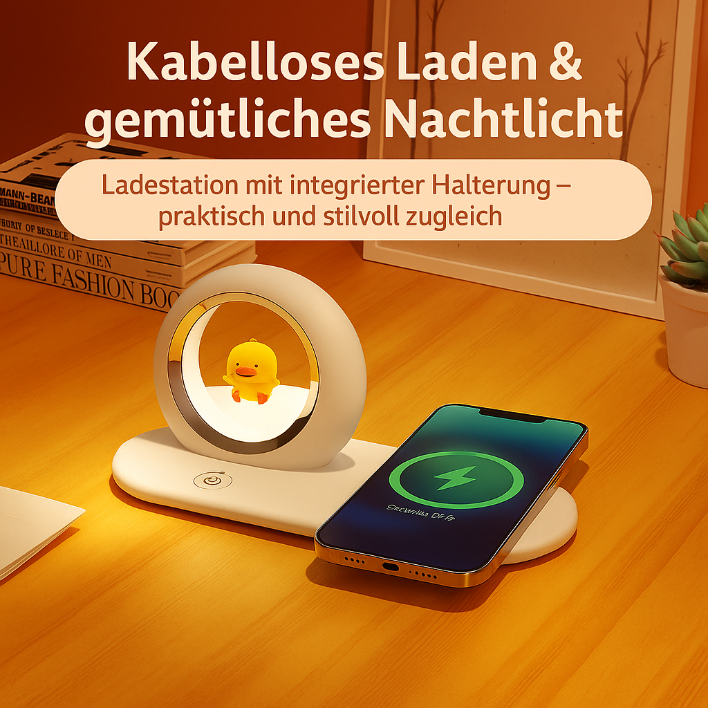 - Produktart: 3-in-1 LED-Nachtlampe mit kabelloser Ladefunktion